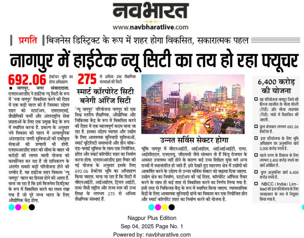 This mega project will place Nagpur among the leading corporate and technology-driven cities of India, bringing world-class infrastructure, employment, and sustainable urban development to the Orange City.