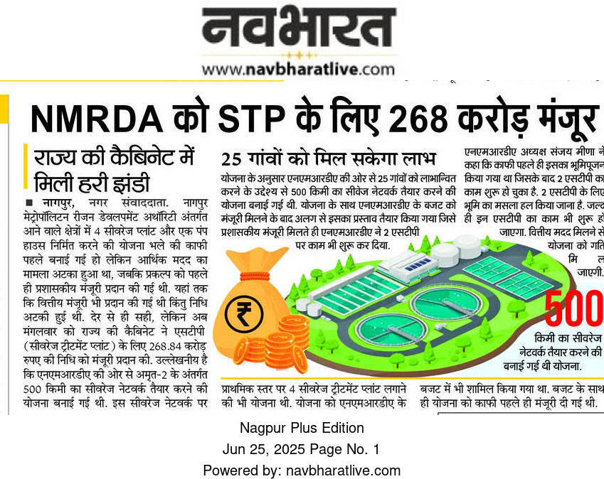 The Maharashtra State Cabinet has given its approval, a “Green Signal” (हरी झंडी), to a major urban infrastructure project for the Nagpur Metropolitan Region Development Authority (NMRDA). This project, costing ₹268.84 crore, is focused on creating a robust sewage management system for the region.