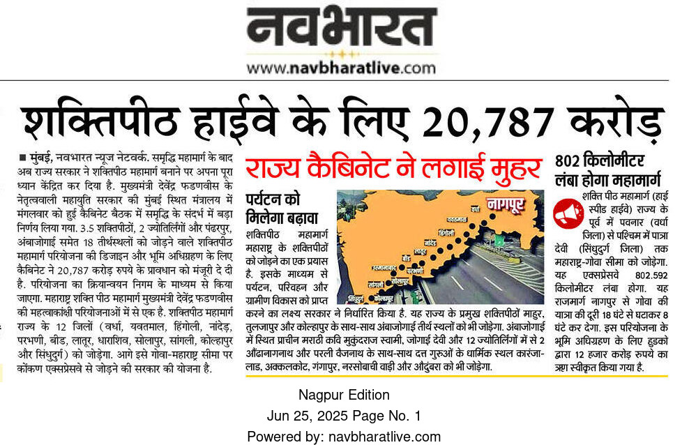 Maharashtra Shaktipeeth Expressway a major infrastructure project in the state.