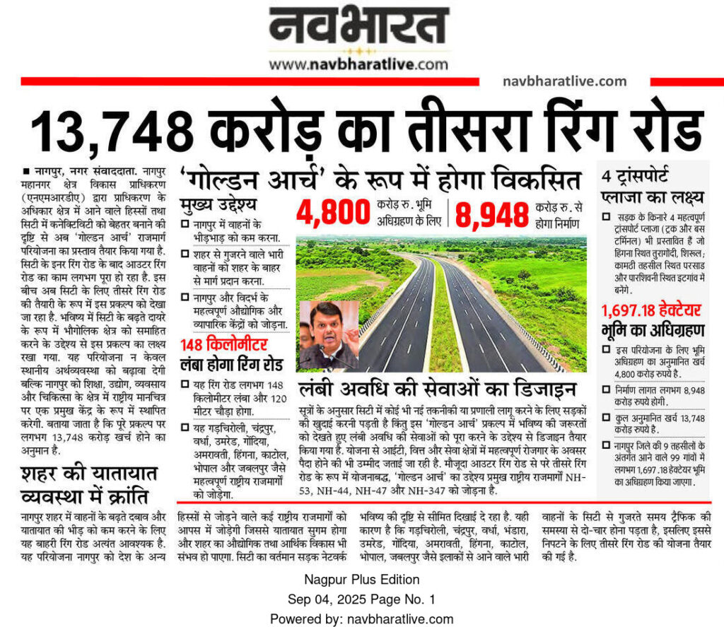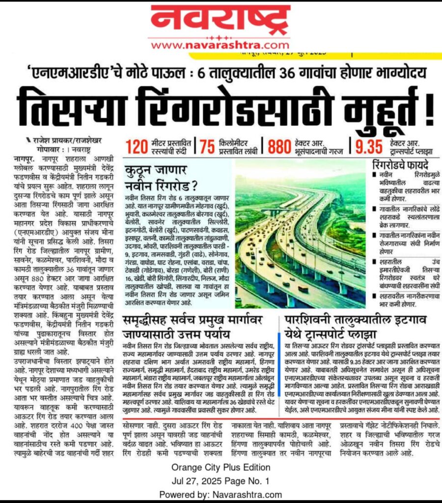This is not just a road—it’s a future-ready corridor for economic growth, logistics, and urban expansion. Nagpur is set to become a model for smart infrastructure planning in Maharashtra.