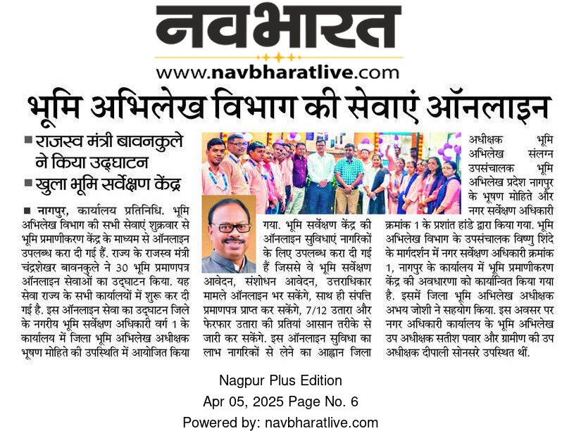 The State Revenue Minister, Shri Chandrashekhar Bawankule, on Friday inaugurated online services for Land Certification (भूमि प्रमाणन) via the Land Records Department. This initiative is a major step towards making all land record services accessible to citizens online across various district offices in the state.