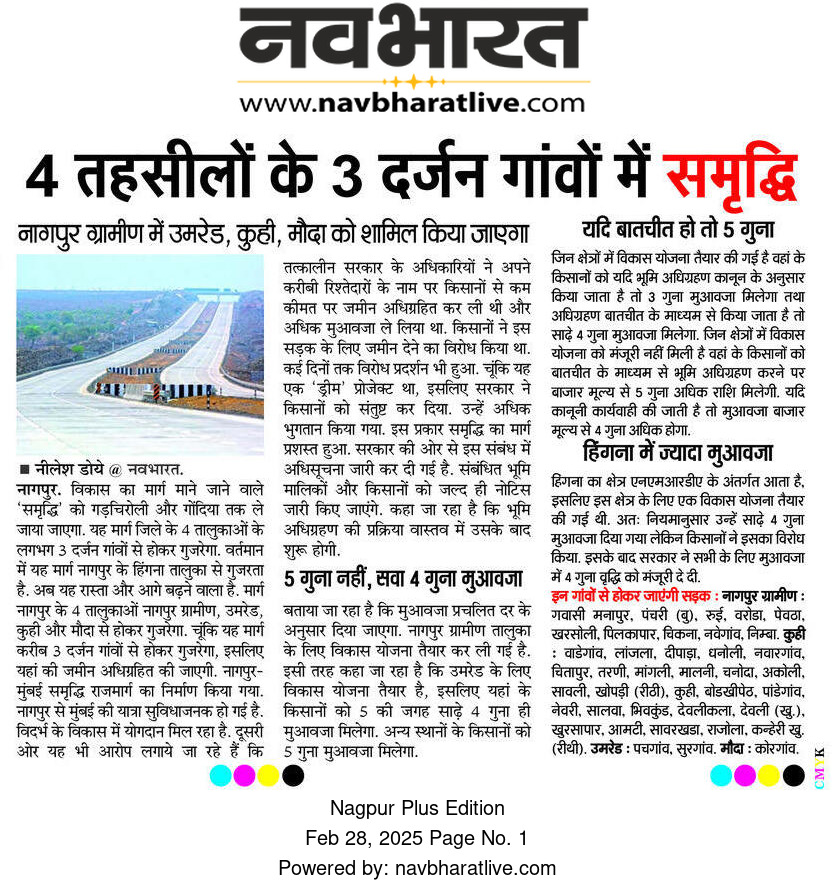 The Development Corridor Road Project, which will connect major highways and boost regional infrastructure, is set to bring prosperity to nearly three dozen villages in Nagpur district.