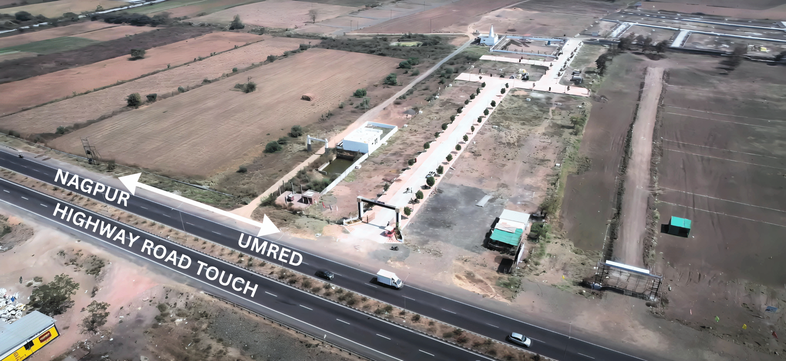 View the Grand Entrance of Sainagri 3 – An NMRDA & RL Approved Plots Project at Umergaon, Umred Highway  Touch, Nagpur.